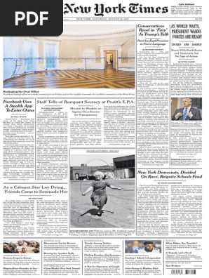 The New York Times 2017 08 12 Pdf United States Environmental Protection Agency American Government